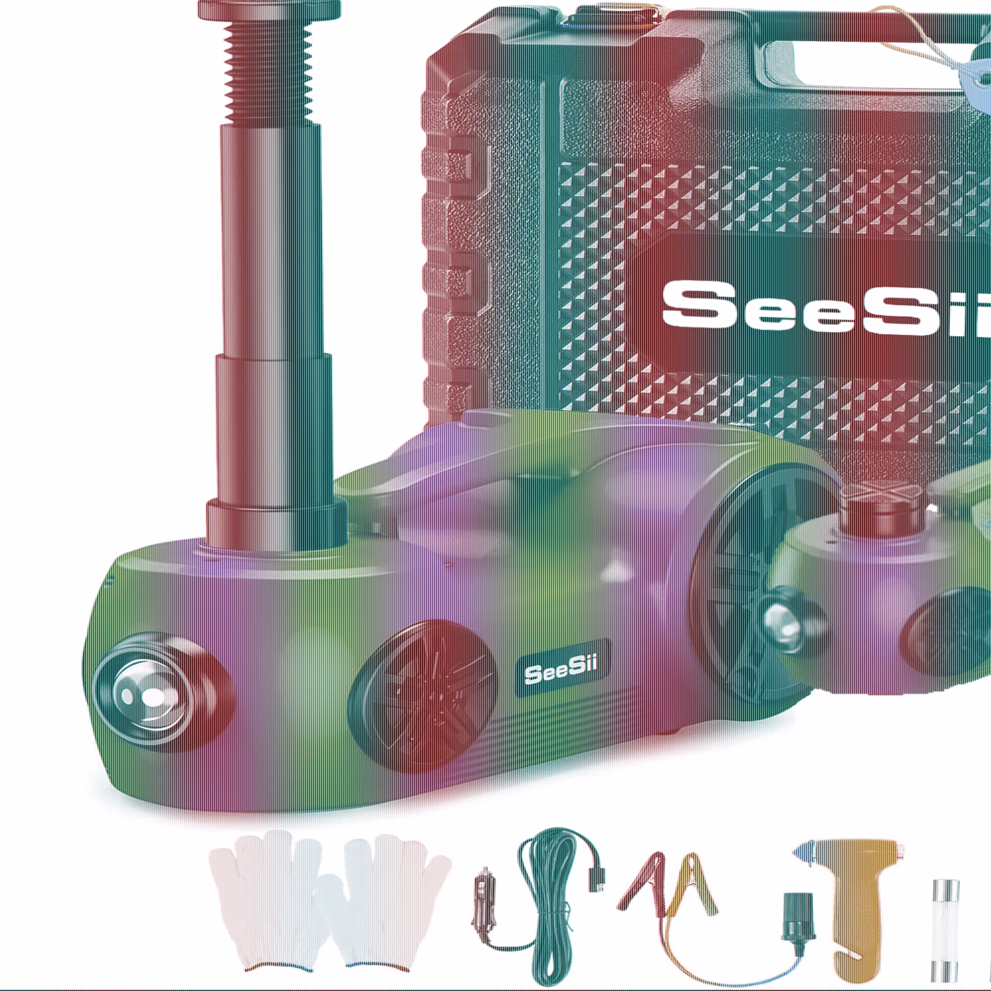 Seesii Electric Hydraulic Car Jack Kit, 5 Ton 12V Electric Car Floor Jack Lift (Max Height 17.7'') Portable with Built-in Tire Inflator Pump, LED Light for SUV MPV Sedan Truck Garage Tires Change