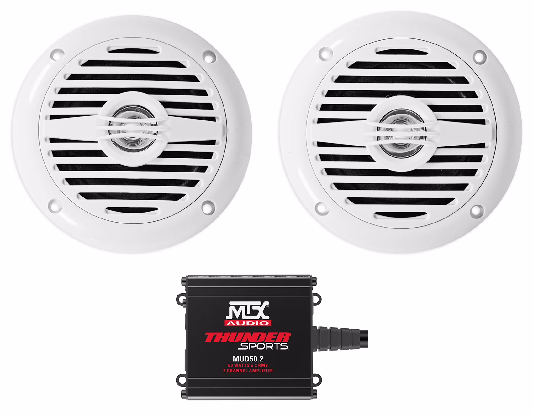 2) Rockville MS40W White 4" 200 Watt Speakers+MTX Amplifier For ATV/UTV/Cart
