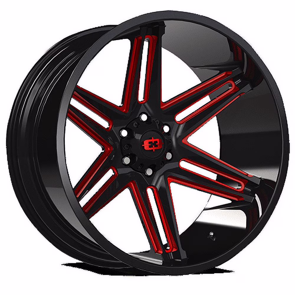 24x12 Vision 363 Razor Gloss Black Milled Spoke W/Red Tint Wheel 8x170 (-51mm)