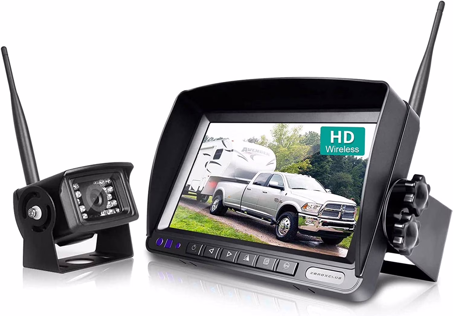 ZEROXCLUB Wireless Backup Camera IP69 Waterproof Rear Camera System+7 Inch LCD Wireless Reverse Monitor for RV Trailer Truck Bus 5th Wheel W01