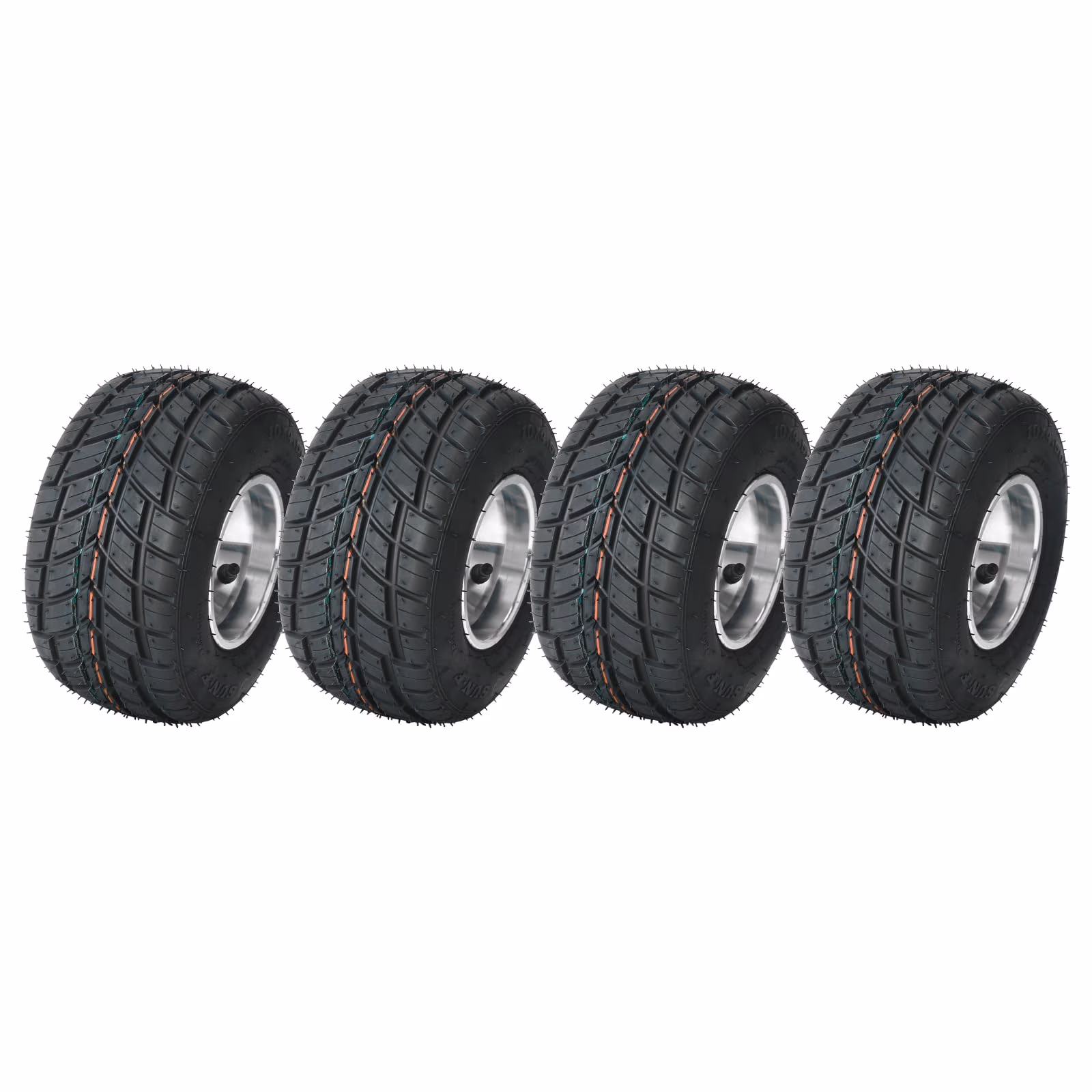 High Performace Go Kart Tire and Rim, 10x4.50-5 Go Kart Front Wheel and Tire Fit Bolt Pattern 48mm w/ 3 Holes for Go Kart Drift Trike Buggy Racing Cart, Non-Slip Tread, Aluminum Alloy Rim (4)