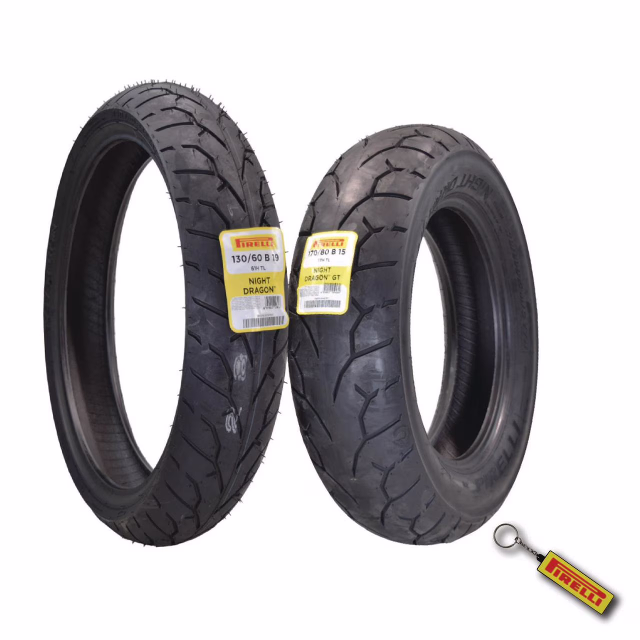 Pirelli Night Dragon Tire Set: 130/60B19 M/C 61H TL Front & Night Dragon GT MU85B16 M/C 77H TL Cruiser Rear Motorcycle Tires - Superior Traction & Handling for High-Performance with Keychain