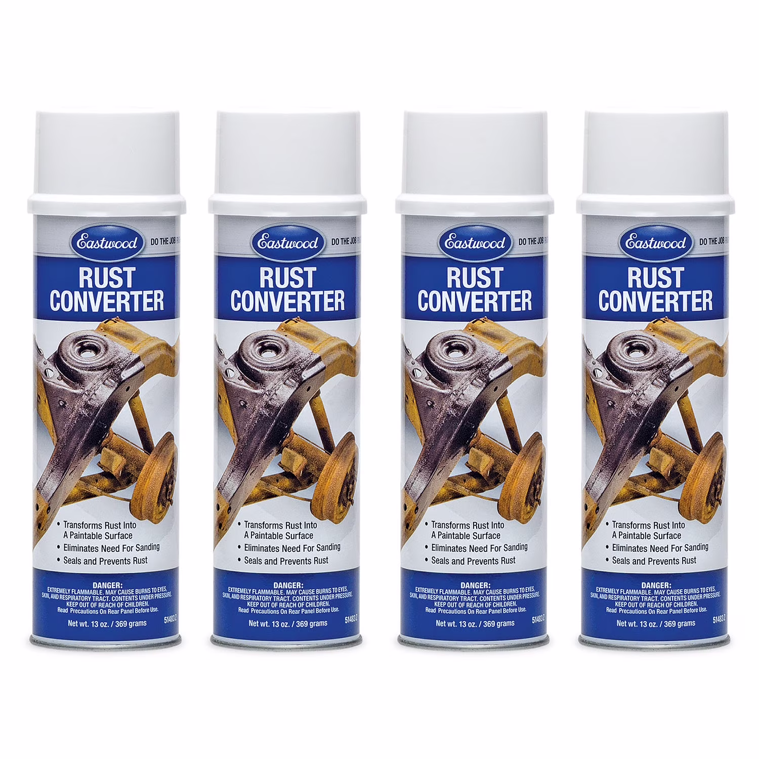 Eastwood Polymeric Rust Converter | Convert Metal Rust into a Protected Primed Surface | Rust Remover Sealant & Protection Primer | Ready to Paint Automotive Undercoating | Black 11oz Aerosol | 4 Pack