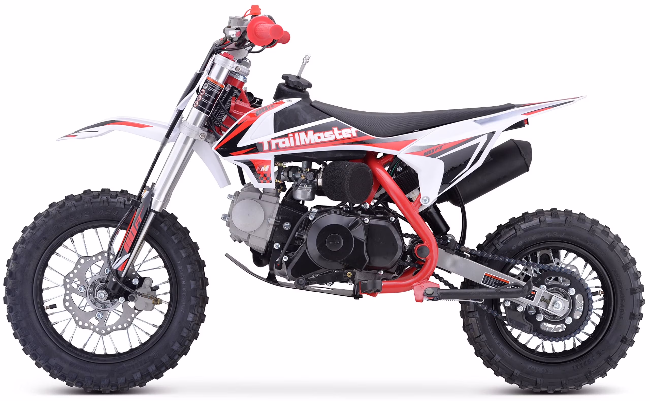Trailmaster TM15 Dirt Bike 110cc Semi Automatic 4 Speed, 24.21 inches seat Height, Disk Brakes, Twin Spar Frame (Red)