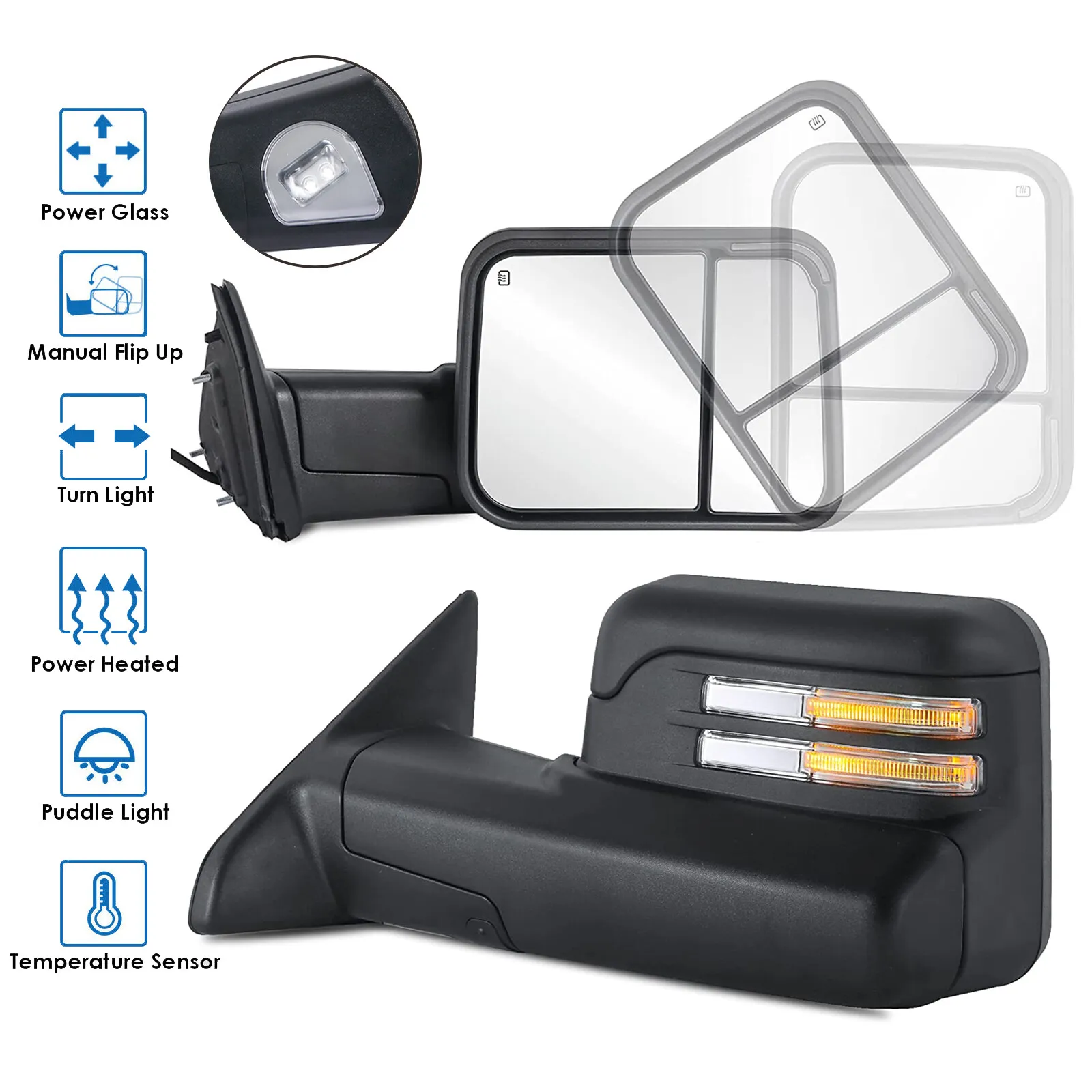 MOSTPLUS 2PCS Power Heated Tow Mirrors for 10-18 Dodge Ram 1500 2500 3500 w/ Led Signal