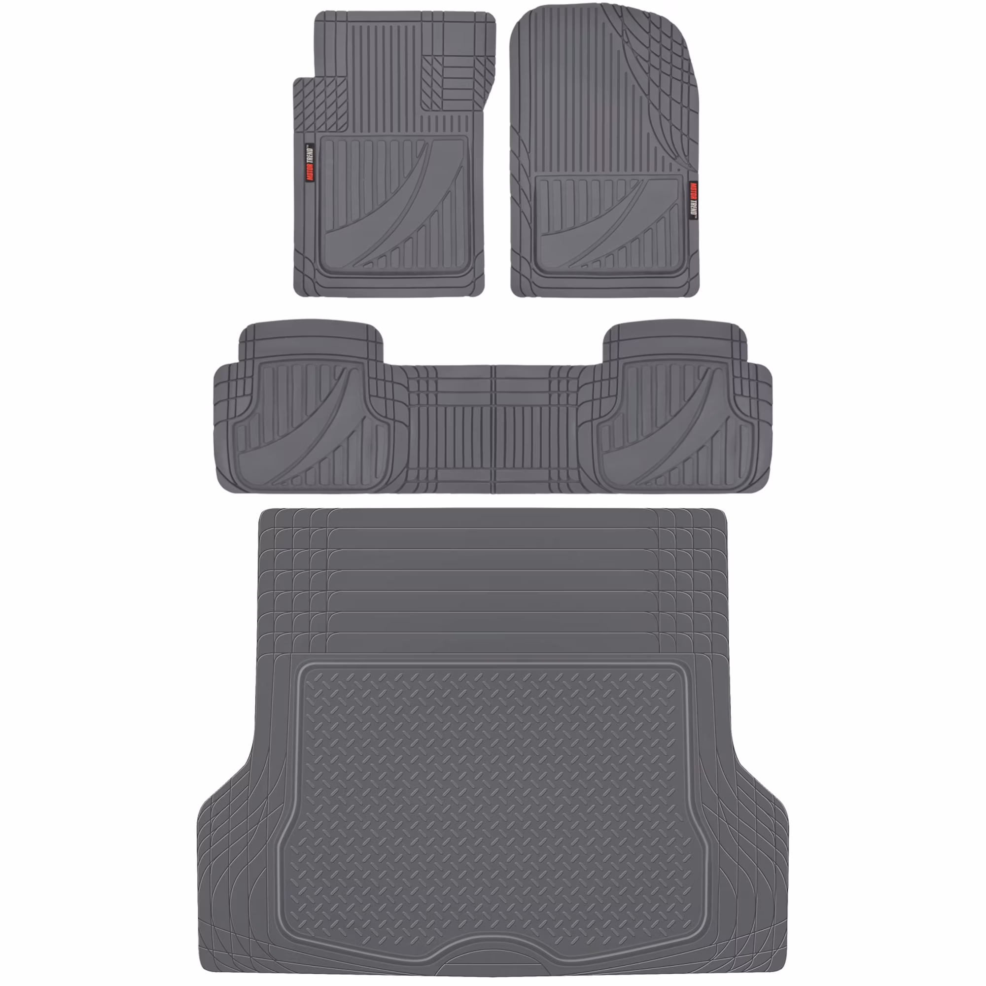 Motor Trend Premium FlexTough™ Advanced Performance Rubber Car Floor Mats with Trunk Mat Cargo Liner, Front & Rear Combo Set fits Most Car SUV Van Coupe Sedan, Heavy Duty All Weather Trim To Fit
