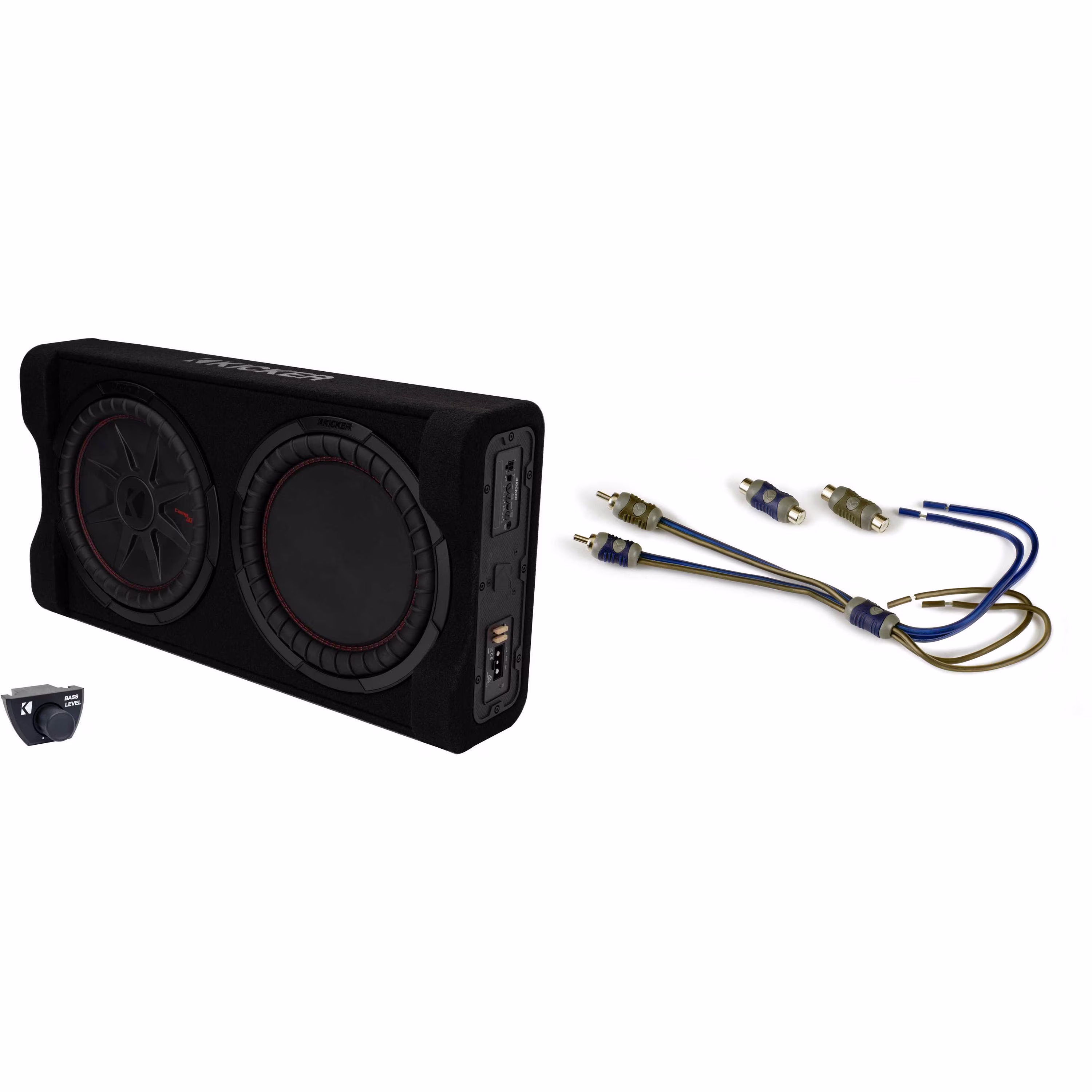 Kicker 51PTRTP12 - TRTP 12" 500w Powered Down Firing Loaded Subwoofer Enclosure & 46KISL K-Series Interconnect, Speaker Wire To RCA Adapte