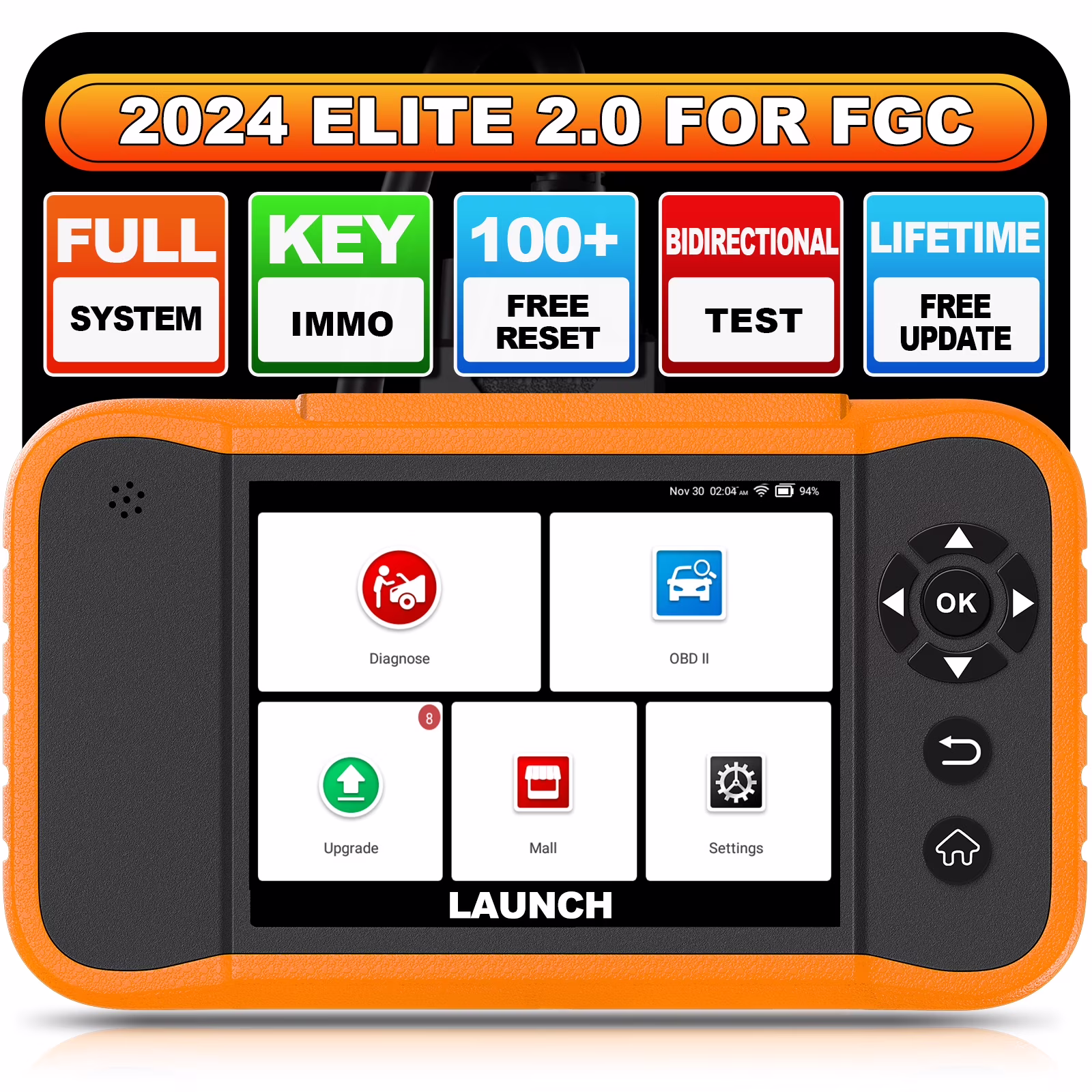 LAUNCH X431 Creader Elite 2.0 for Ford, GM, Chrysler,FGC Car Scan Tool All Reset Full System Diagnostic Scanner with Bi-Directional , AUTOVIN, Lifetime Free Update