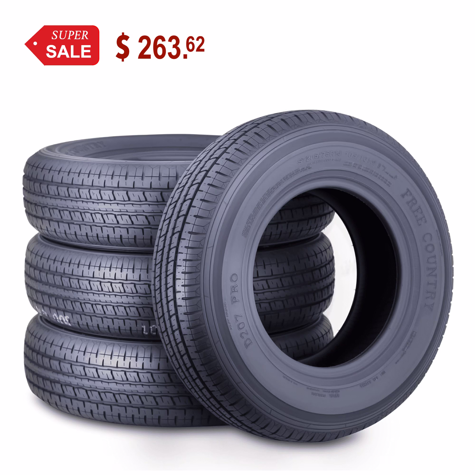 Free Country Premium ST 205/75R14 8PR Load Range D Steel Belted Radial w/Scuff Guard Trailer Tires, Set of 4