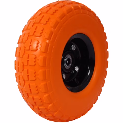 Heavy-Duty Flat free PU foam Tire and Wheel - 4.10/3.50-4", 10" Diameter, 5/8" Axle Bore Hole, 2.2" Offset Hub and Double Sealed Bearings for Hand Trucks Replacement,orange color,