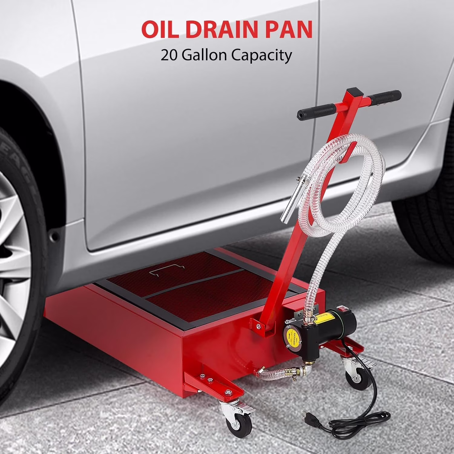 Luku 18 Gallon Low Profile Electric Oil Drain Cart with 110V Pump, 8FT Hose, Rolling Pan for Vehicles