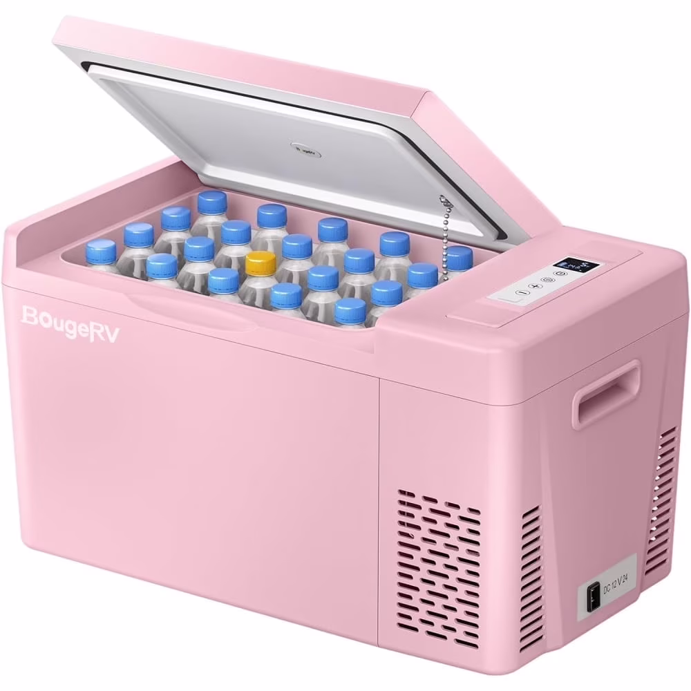 BougeRV Pink 23Qt Car Refrigerator 12 Volt Fridge Portable Freezer Compressor Cooler 12/24V DC 110~240V AC, -7�H~50�H for RV Truck Vehicle Boat Outdoor & Home Use