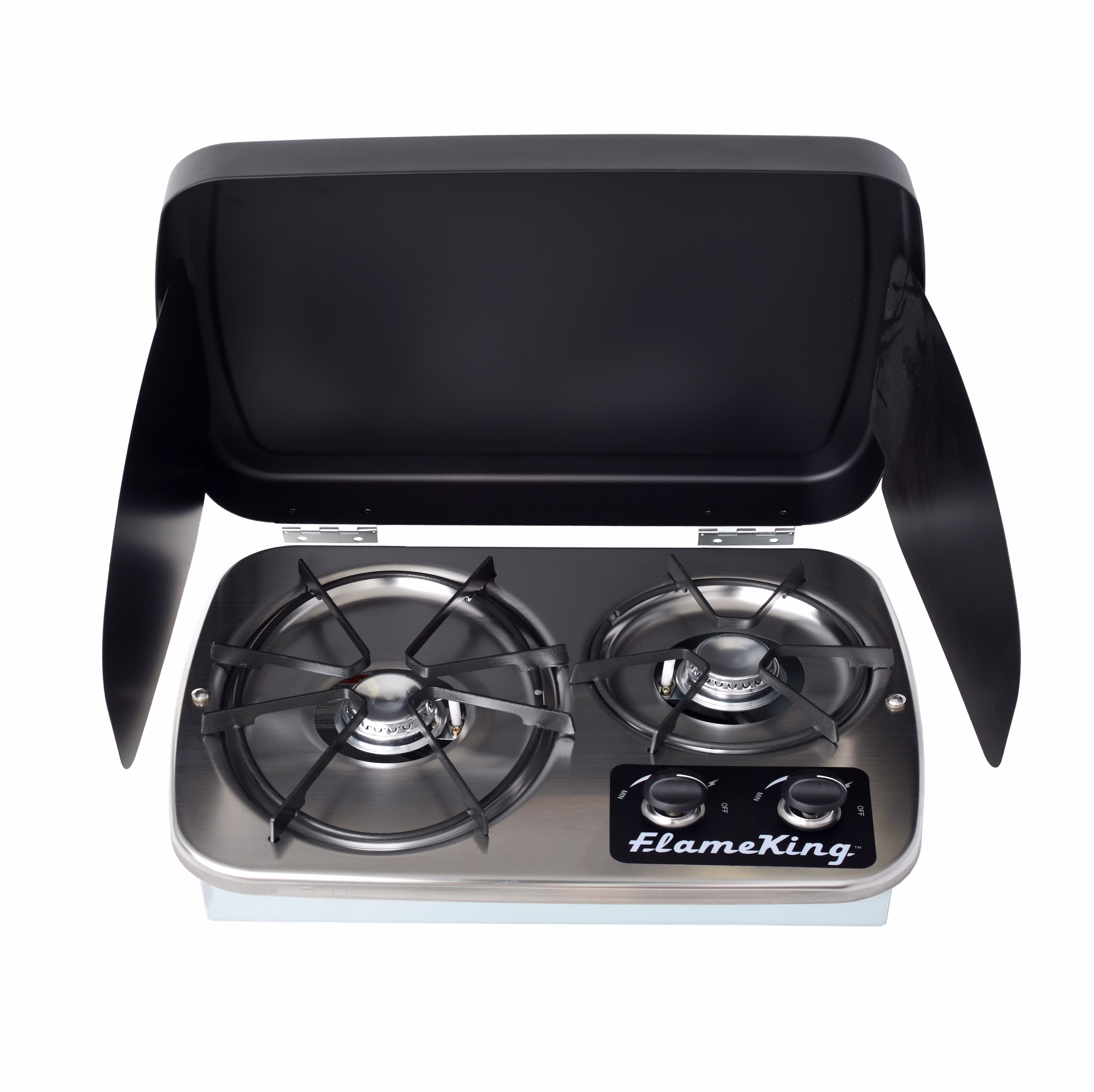 Flame King 2-Burner Built-in RV Cooktop Propane Stove, Self-Igniting, Cover Included
