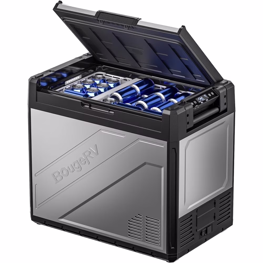 BougeRV Rocky 12 Volt Car Refrigerator, 81QT Dual Zone Car Fridge Freezer with Metal Casing, APP Control Compressor Cooler 12/24V DC, 110~240V AC for RV Truck Vehicle Outdoor Travel Camping Trip
