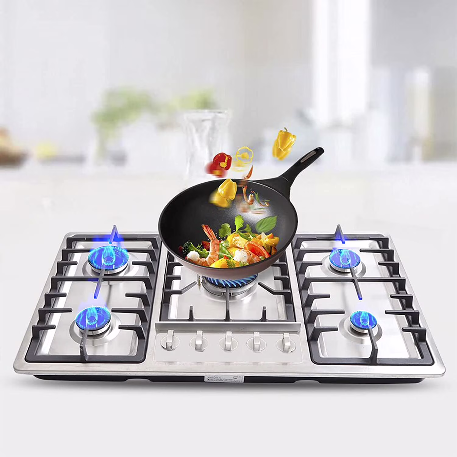 Miumaeov 5 Burners Built in Gas Stovetop Cooker ortable Stainless Steel Cooktop LPG/NG Dual Fuel Cast Iron Grate Gas Stove for Home RV Outdoor Apartment Silver 33.85x19.68Inch