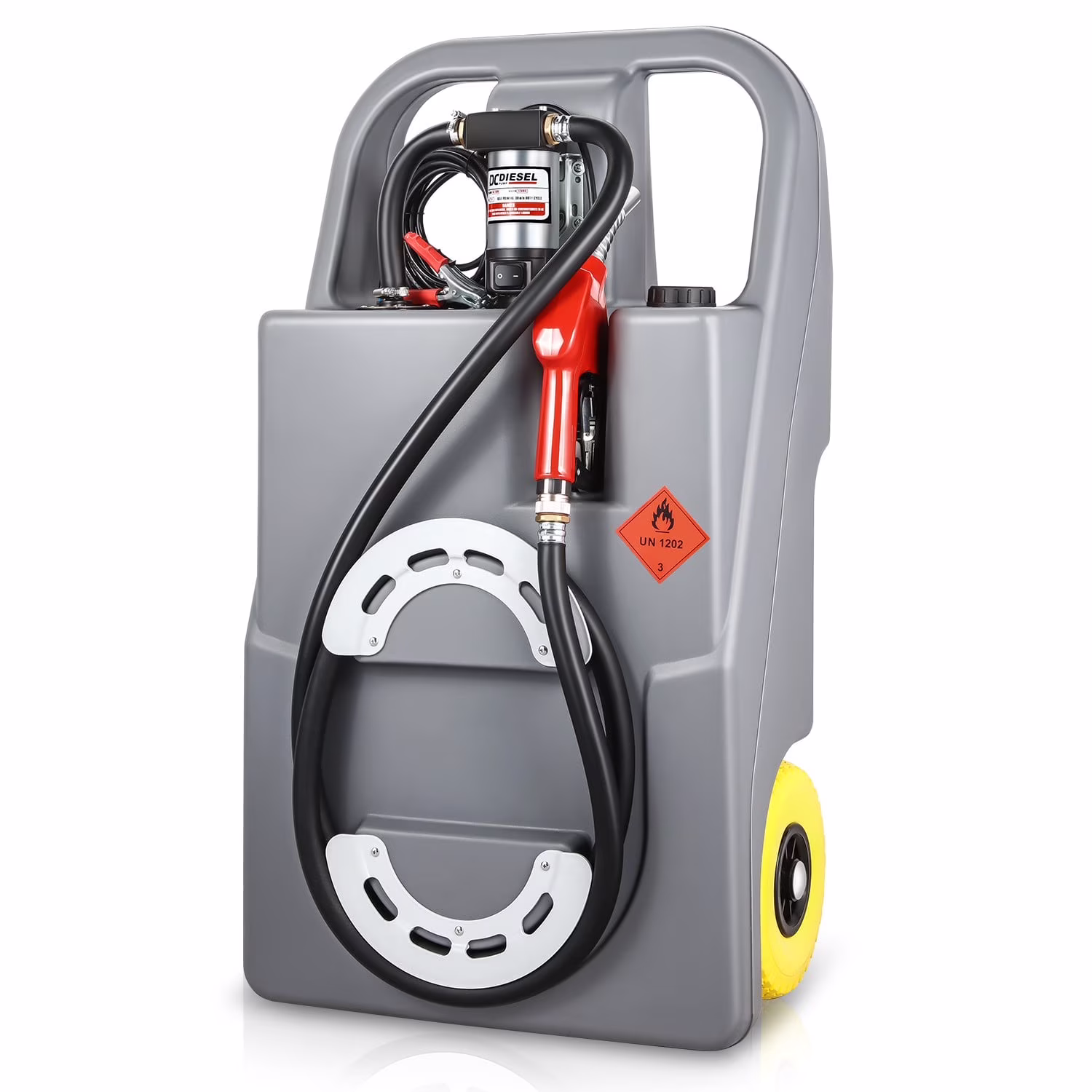 Portable Fuel Tank, 58 Gallon Diesel & Gasoline Transfer Tank With 12V Electric Pump, 10 GPM Flow Rate, 13ft Hose, Auto Fueling Nozzle, Fuel Transfer Tank for Easy Transportation