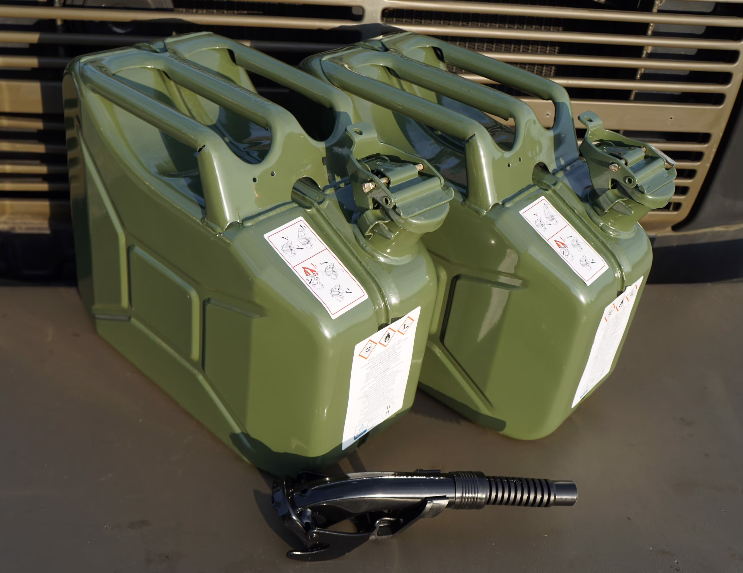 NATO Swiss Army Gas Jerry Can 10 Liter Set of 2 Military steel 2.5 Gal with Spout