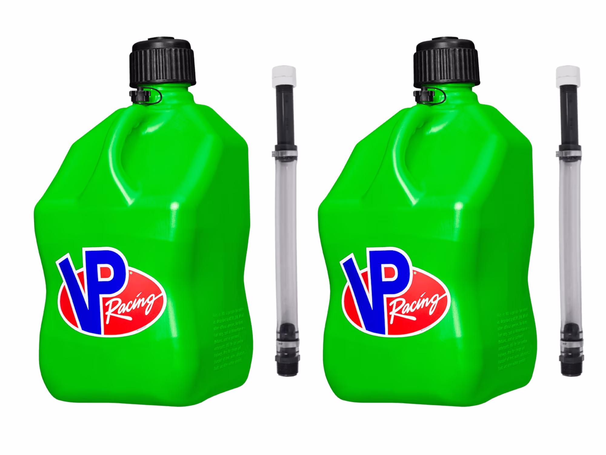 VP Racing Utility Jug 5.5 Gallon + Deluxe Hose - Mix and Match Between 11 Different Colors - Made in the USA (2 Pack, Green)