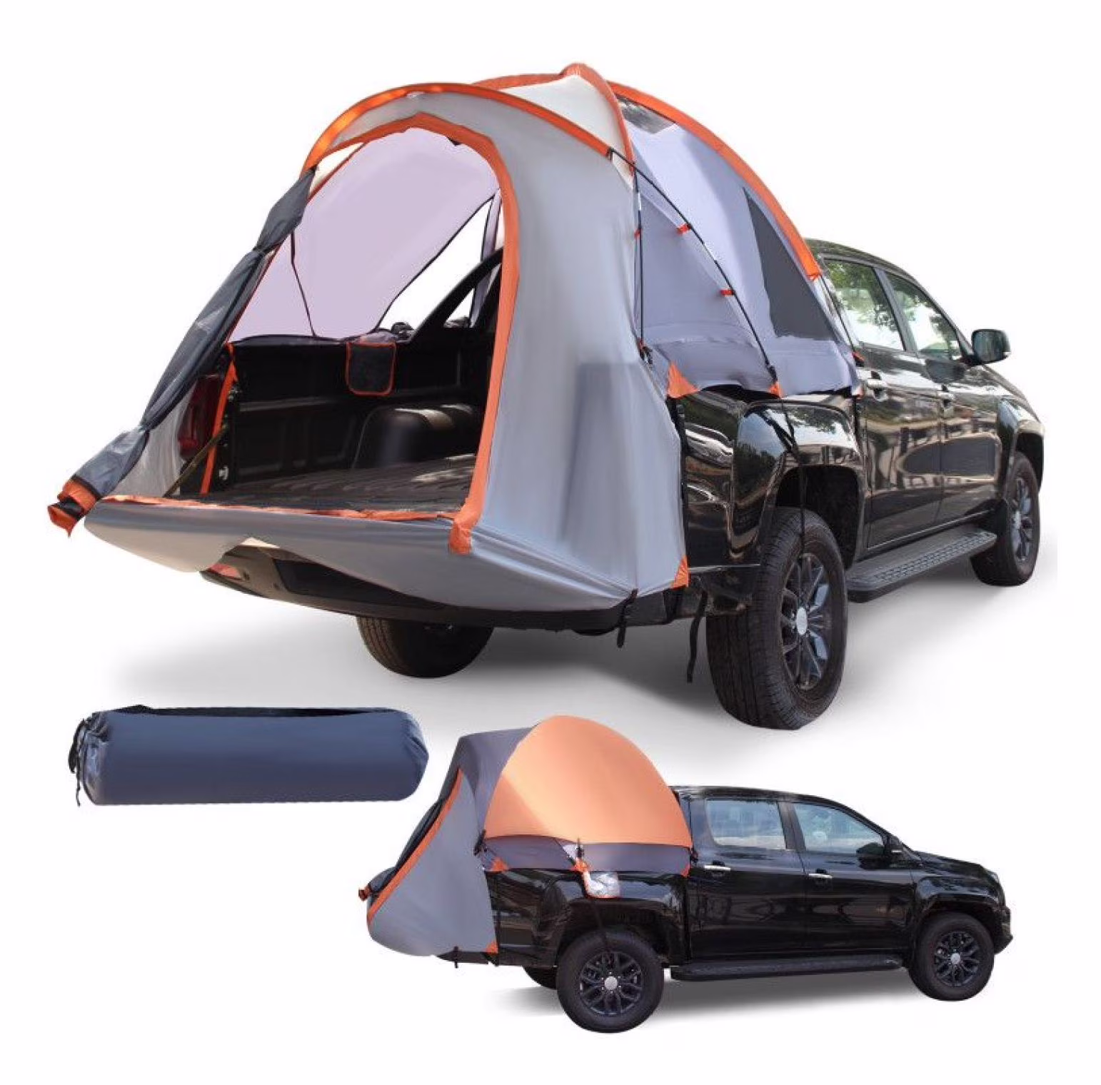 Truck Tent 2 Person Portable Pickup Bed Tent with Carry Bag - Waterproof Camping Tent for 5-6.7ft Truck Bed - Orange/Silver