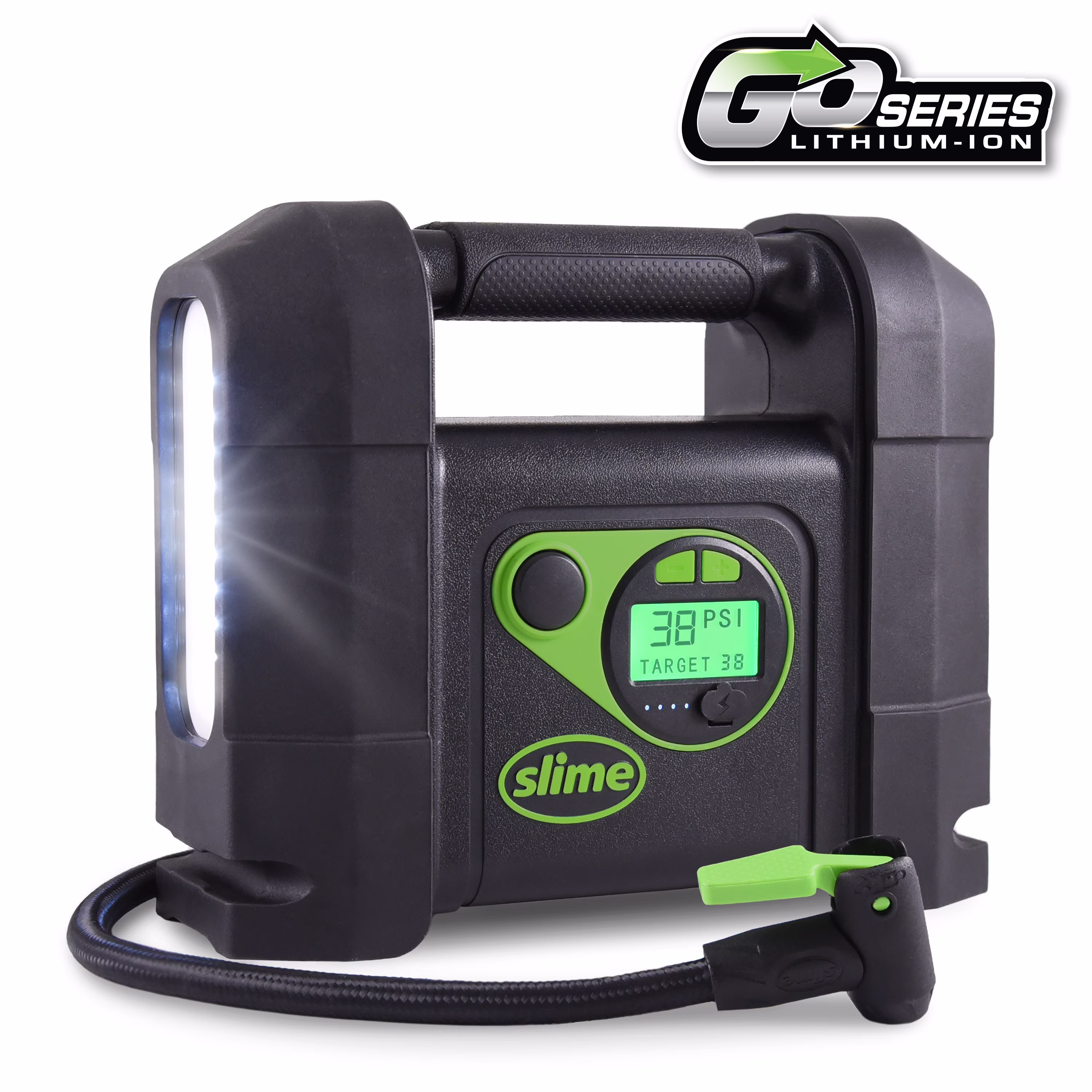 Slime Tire Inflator, Portable Car, SUV, 4x4 Air Compressor, Elite Heavy Duty, Inflate Right Automatic Shut off, with Digital 99 Psi Display, Long Hose and LED Light, 12V, 3 Min Inflation - 40063