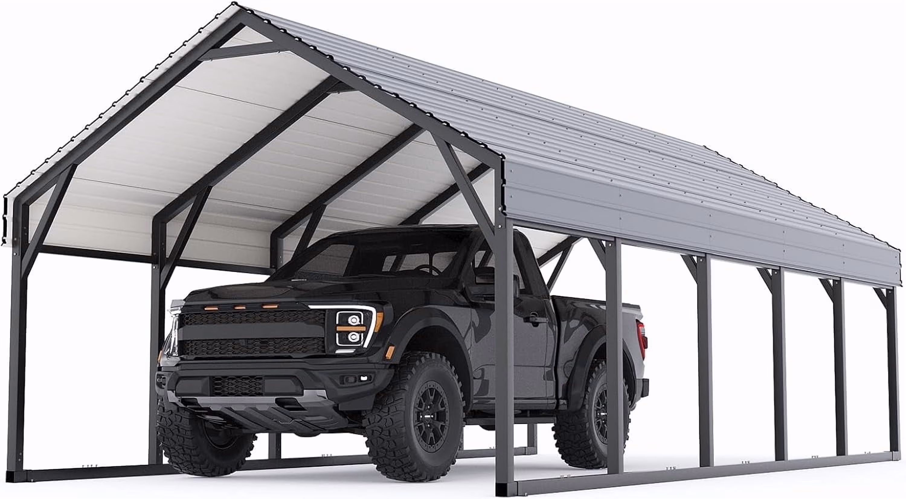 Gotland 12FT x 22FT Heavy Duty Metal Carport, Outdoor Garage Car Shelter with Reinforced Steel Frame, Galvanized Metal Roof, Weather-Resistant Canopy for Cars, Trucks, Boats, and Tractors
