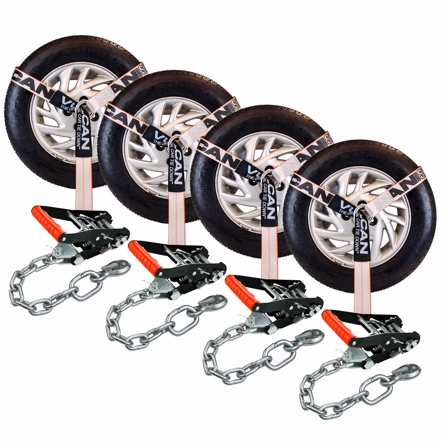VULCAN Car Tie Down, Chain Anchors, Lasso, 2 inch x 96 inch, 4 Pack, Silver Series, 3300 Lbs SWL