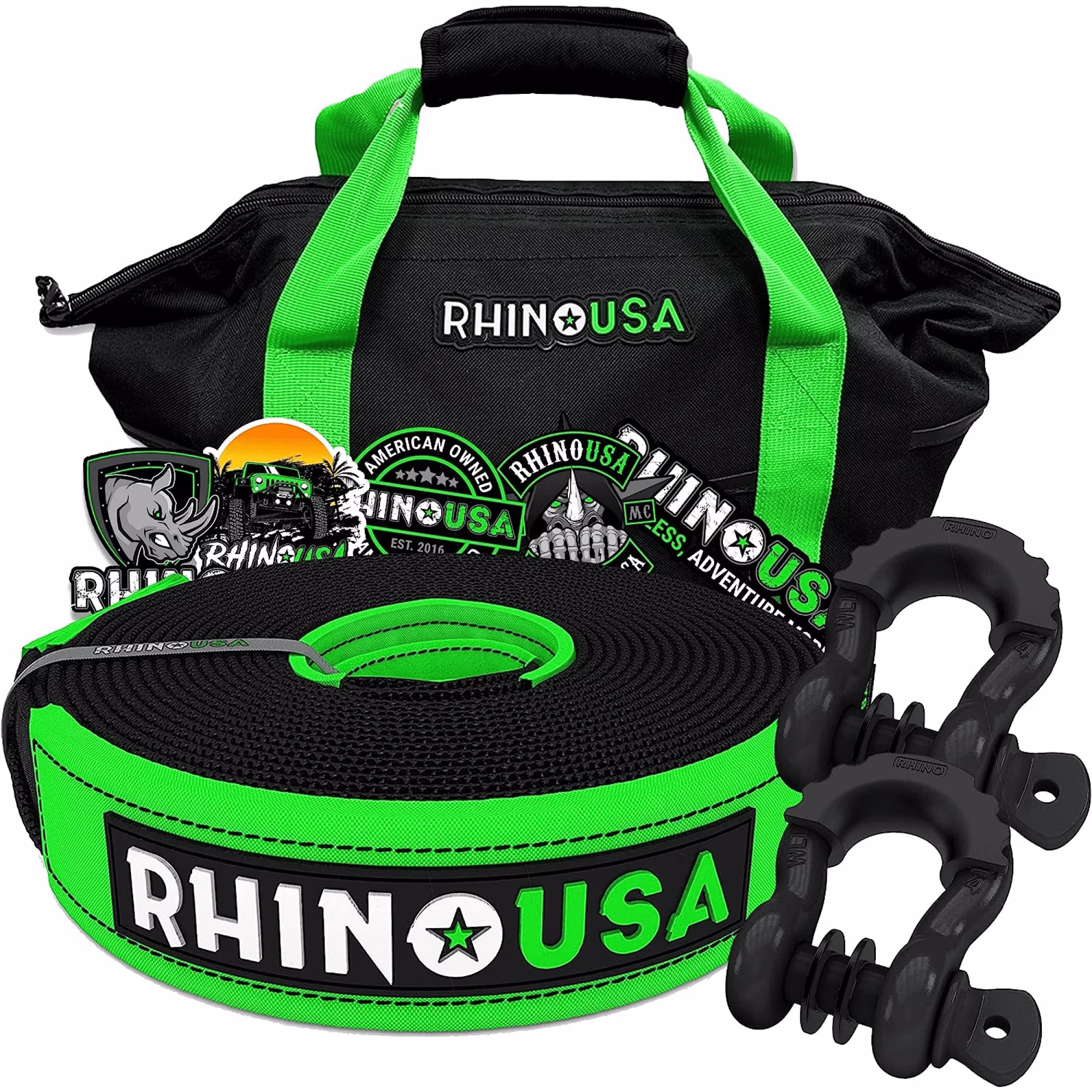 Rhino USA Combo Recovery Tow Strap (30ft) & D Ring Shackles - off-Road Vehicle Safety & Performance