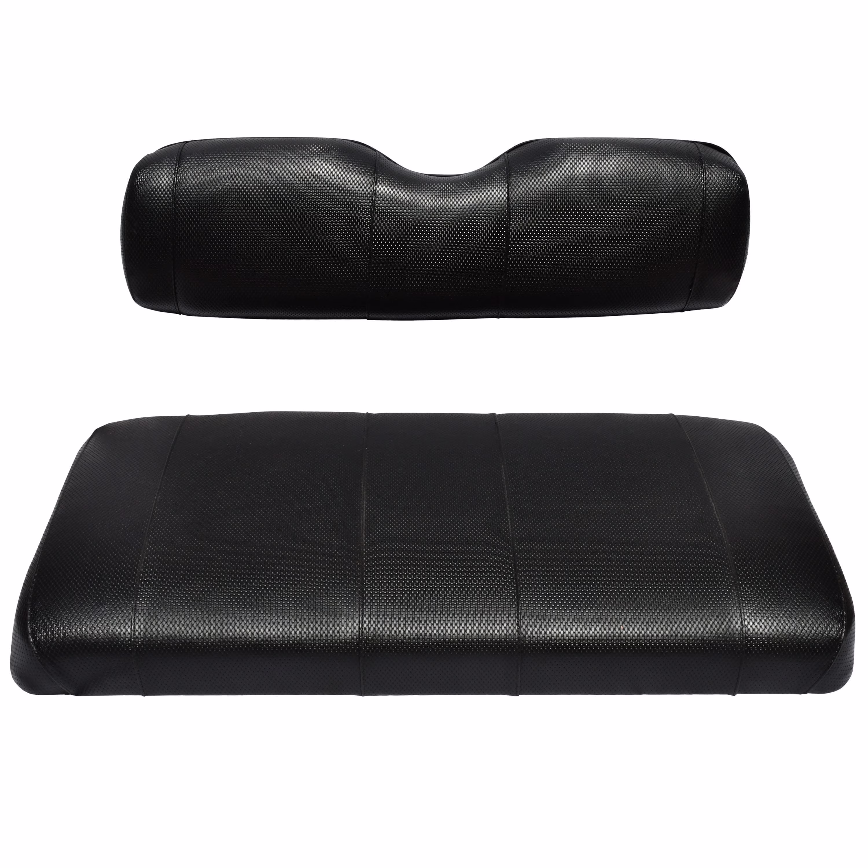 EZGO TXT Replacement Golf Cart Seat Cover Staple On Installation - 2 Piece - Premium Marine Vinyl - 5 Panel Stitching - Two-Tone (Black)