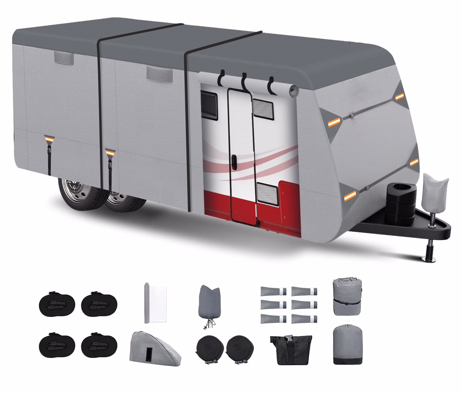 Fiberglass Travel Trailer Cover for 8'-10' 80" Wide Camper Cover 7 Layers Top RV Cover Windproof Strap Adhesive Repair Patches