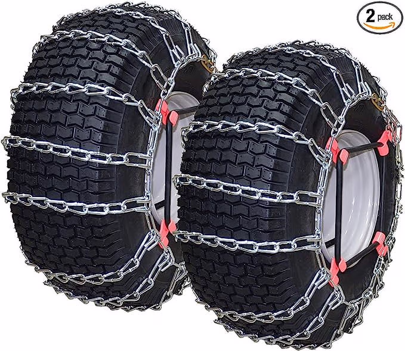 OakTen Set of 2 Tire Chains with Tensioners for Lawn & Garden Tractors Mowers, 2-Link, Fits for Tire Size 22x8x10 22x8x12