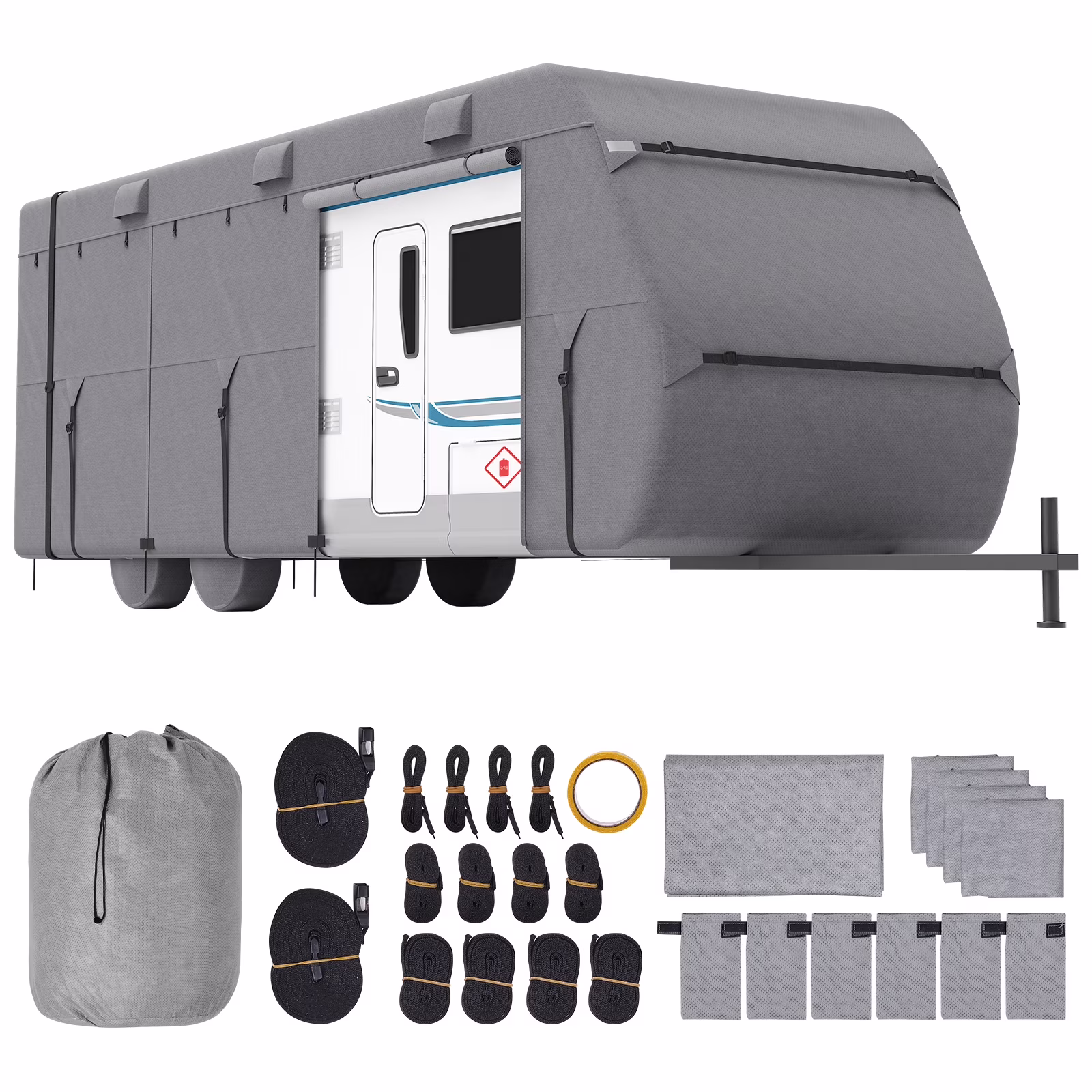 VEVOR Travel Trailer Cover, 18-20 ft RV Cover, 4-Layer Non-Woven Fabric Camper Cover, Waterproof, Windproof and Rip-Stop Class A RV Cover, with Storage Bag, Repair Patches, Straps and Tire Covers