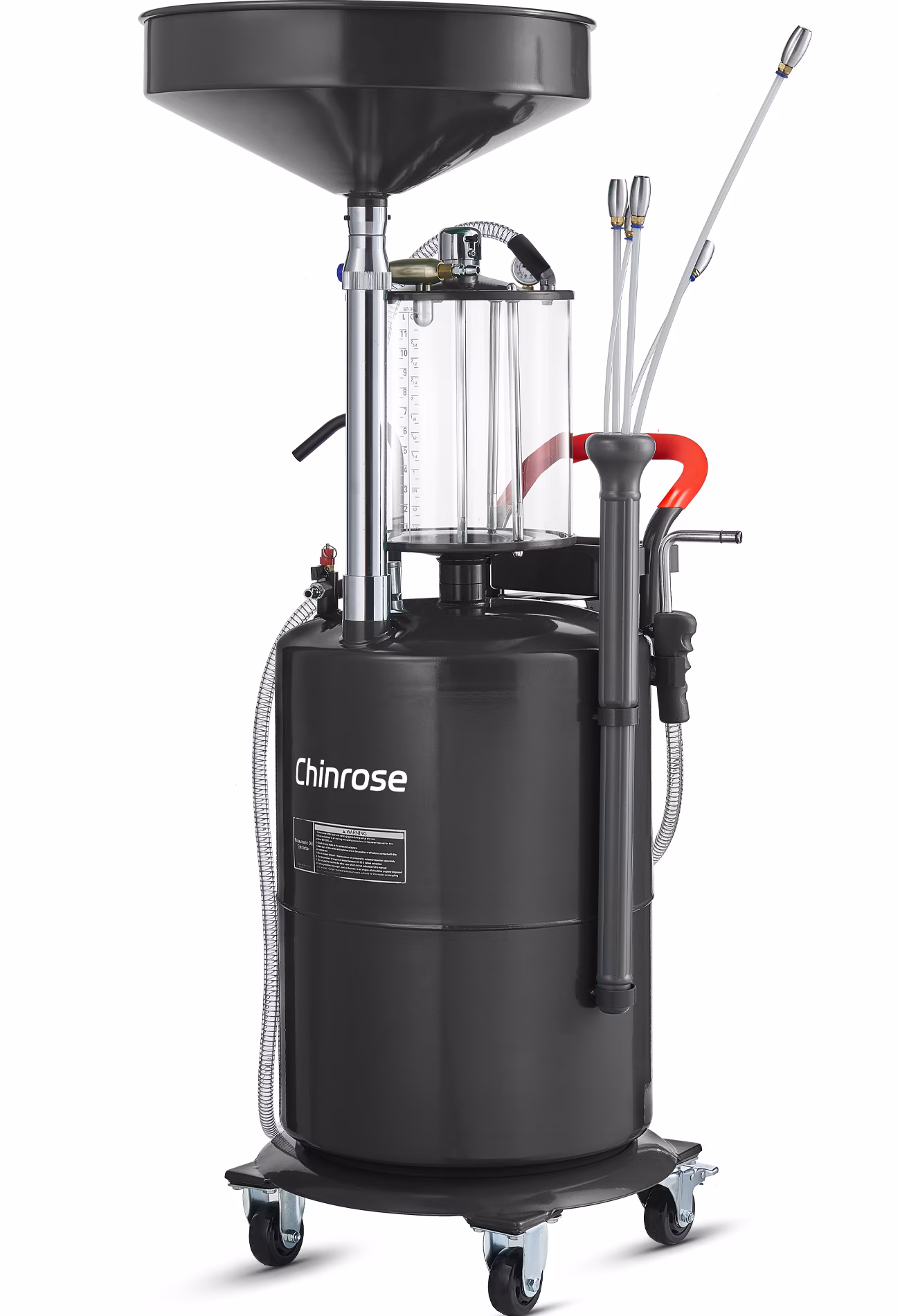 Waste Oil Drain Tank, 26.4 Gallon Capacity, Pneumatic Oil Extractor, 61 in. Suction/Drain Pipes, 3.17 Gallon Measuring Cup,
