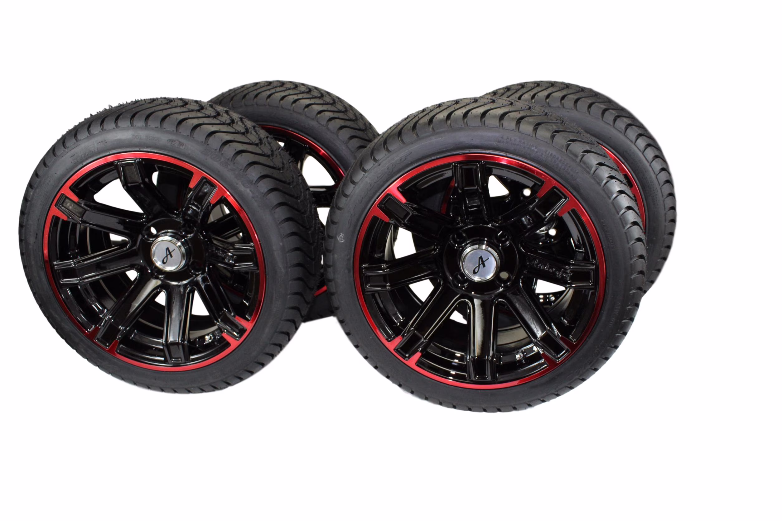 Antego Tire and Wheel (Set of 4) 205/40-14 DOT Tire w/Glossy Black/Red Aluminum Wheel Assemblies for Golf Carts/Buggies