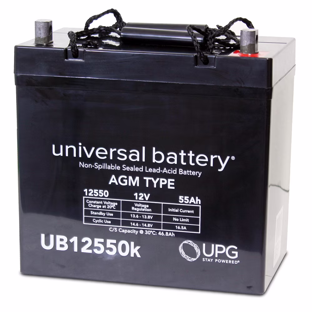 UPG UB12550 12V 55Ah AGM 22NF +R Battery for Mobility Power Chair Scooter Wheelchair Pride Jazzy Quickie Zippie Deep Cycle Marine RV Camper Min Kota Trolling Motor Solar Wind Backup