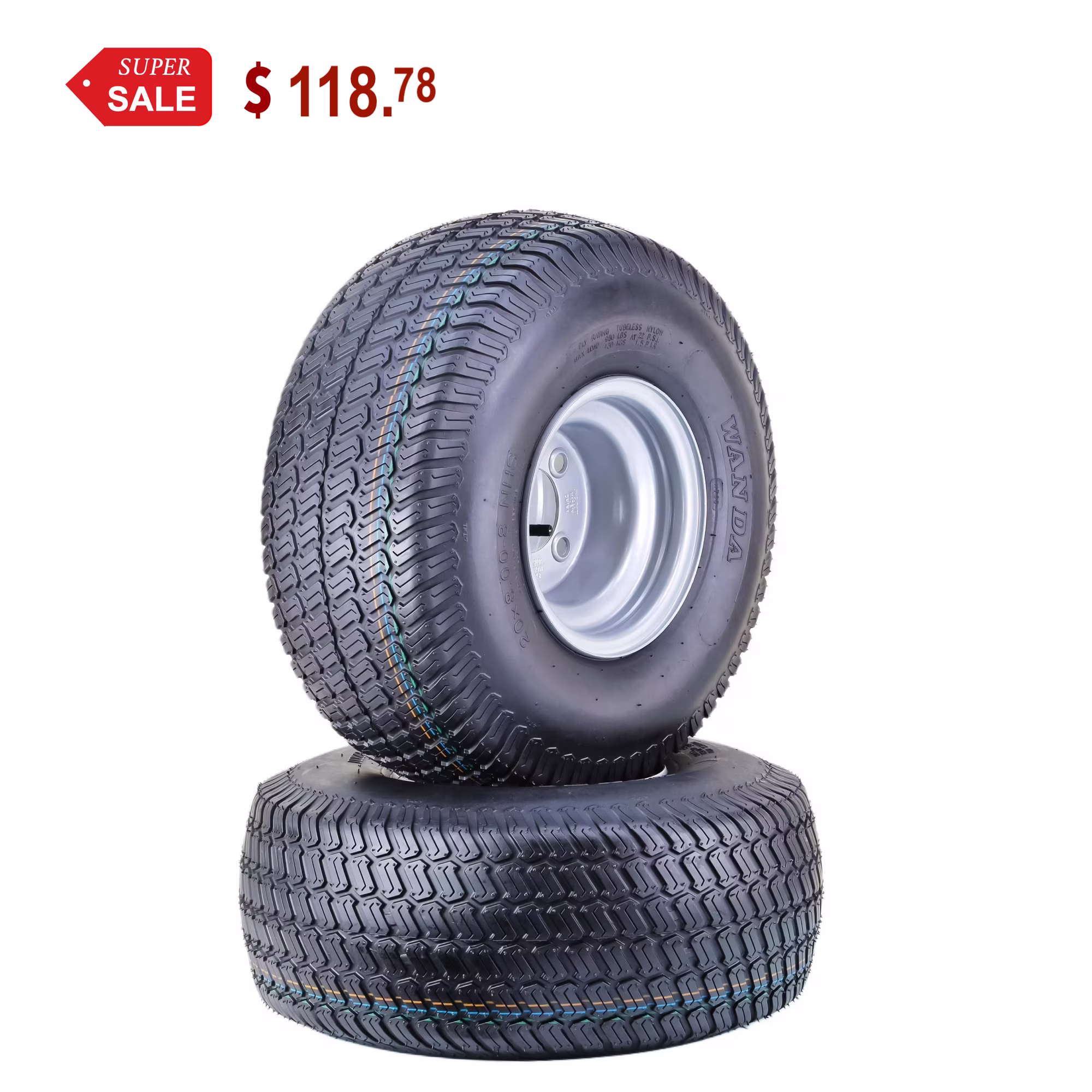 WANDA Lawn Mower Tractor Tire & wheel 20X8-8 4-Ply with 4 Lugs on 4" PCD Silver Wheel-13035,SET 2
