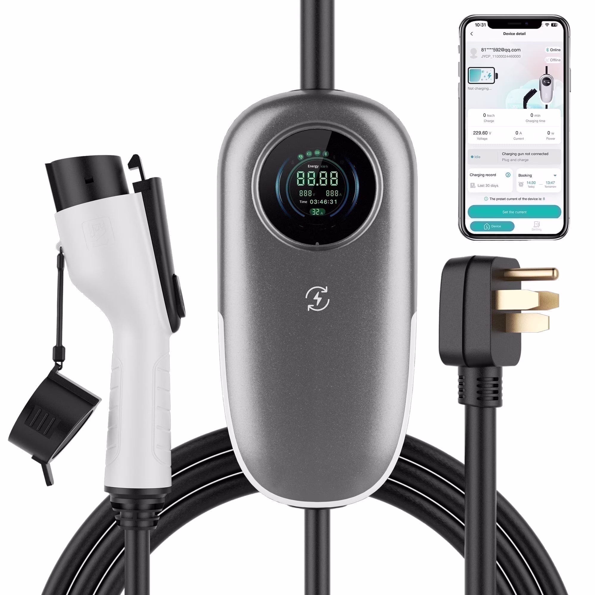 Level 2 EV Charger 32Amp Portable EV Charger240V 7.68KW Electric Car Charger with 17FT Charging Cable NEMA 14-50 Plug for Home Charging Station