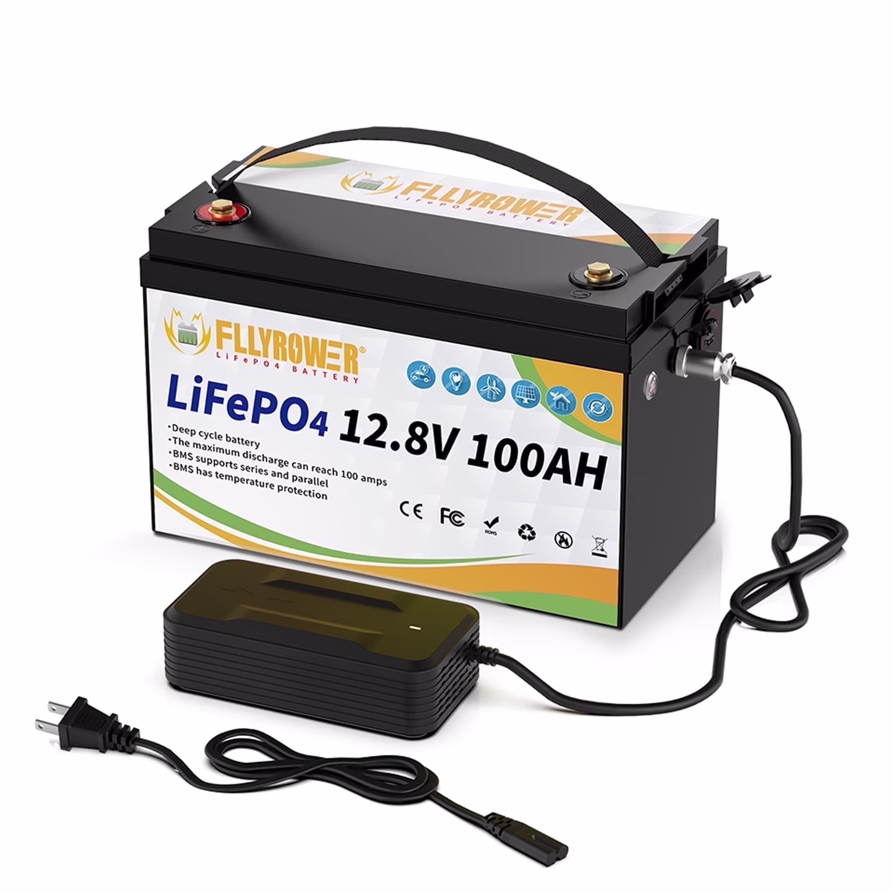 12V 100AH LiFePO4 Lithium Battery,Group 31 Battery with Charger for RV,Solar,Camping,Trolling Motors,Yacht,Marine,Boat,Home Energy Storage,Built in 100A BMS,Deep Cycles