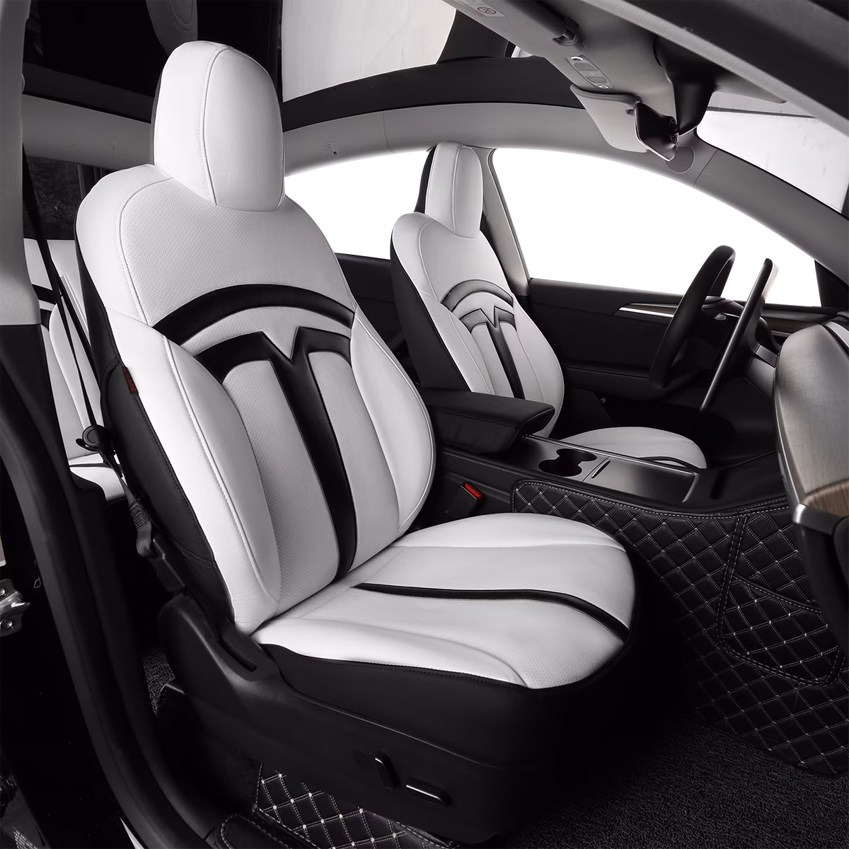 EKR Custom Fit Model Y Car Seat Covers for Tesla Model Y 2019 2020 2021 2022 2023 2024 - Full Set Breathable Leather Auto Seat Covers (Black/White)