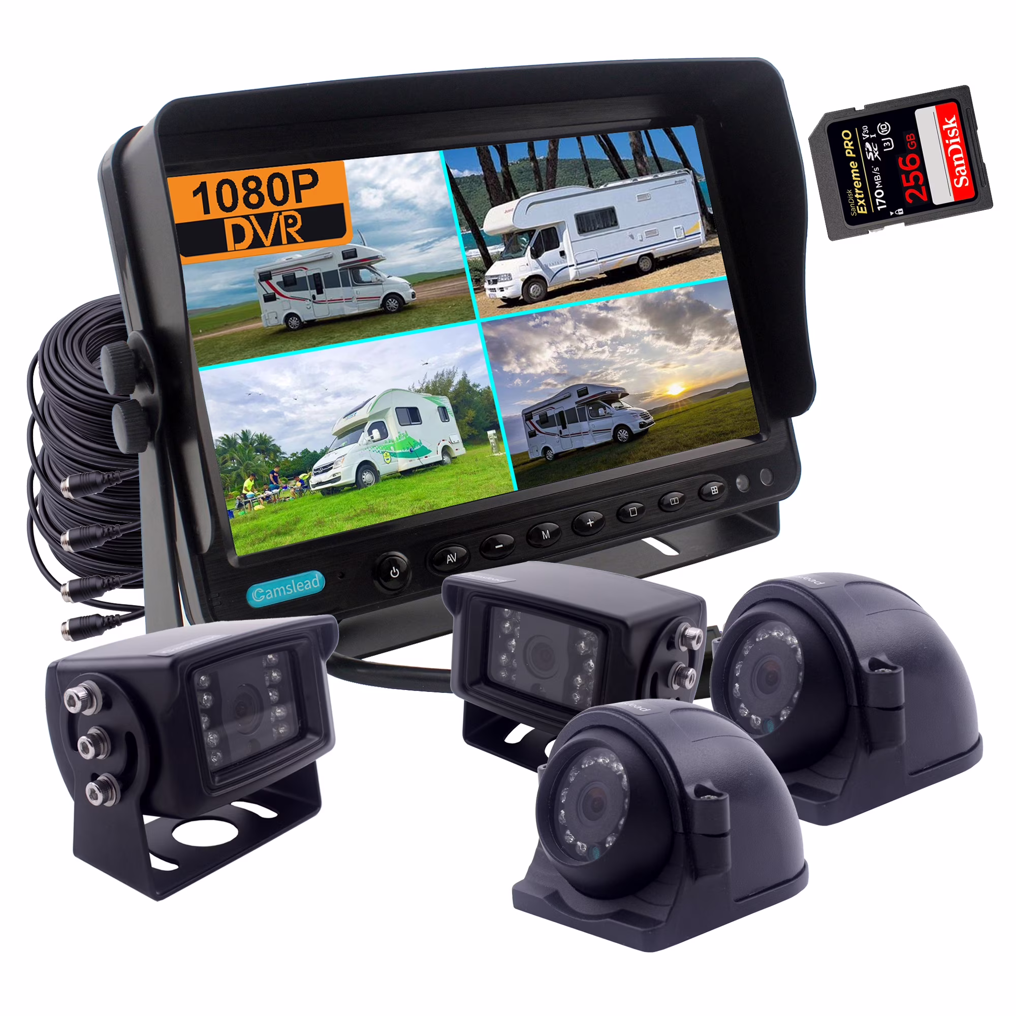 CAMSLEAD 7 Inch Monitor 1080P HD Rear View Camera System HD DVR Recorder Support 256GB SD Card 4CH Input Quad Split Screen 1080P Rear & Side Camera for Truck Trailer- mobile homes