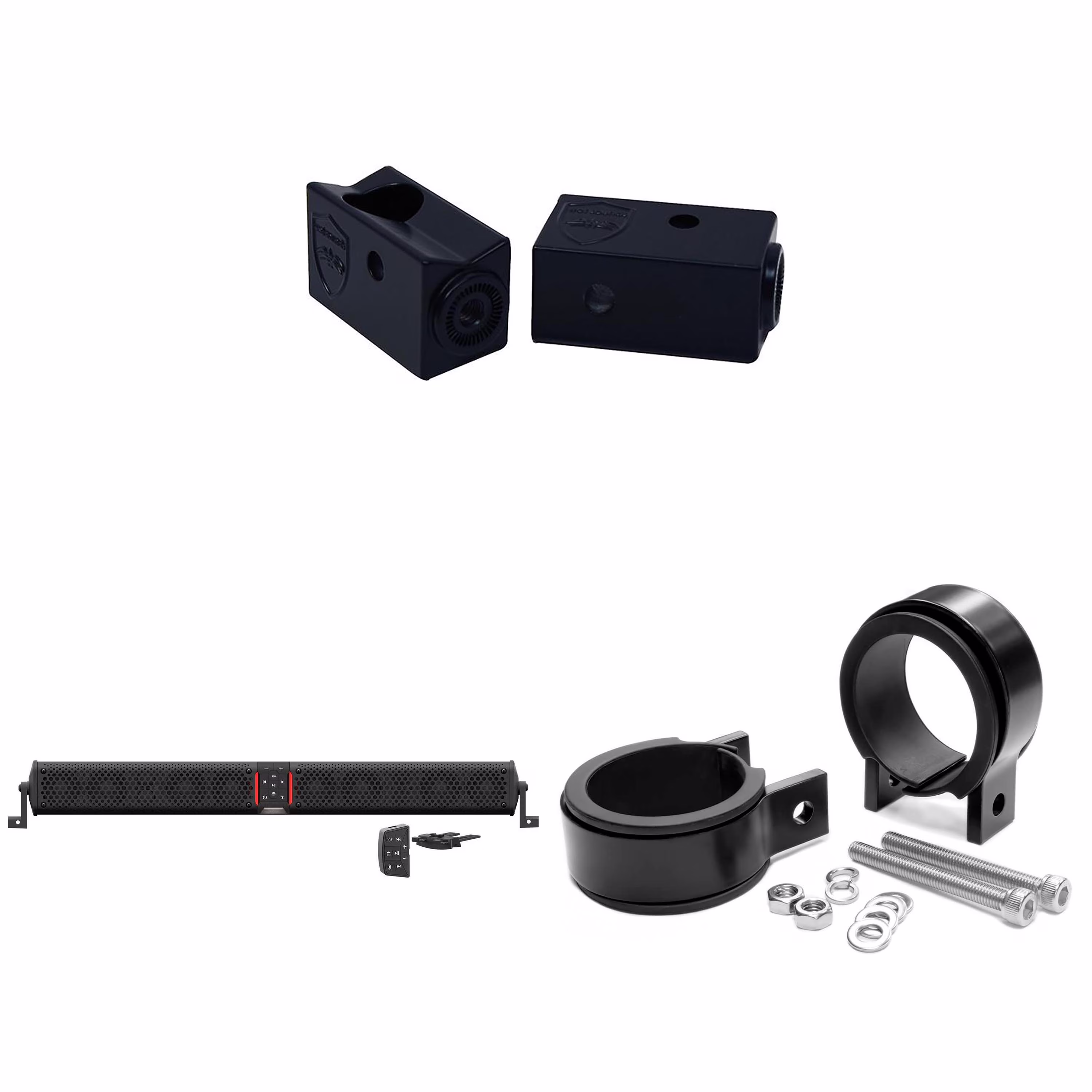 Wet Sounds STEALTH-XT-12-B STEALTH XT 12 Speaker All-In-One Amplified Bluetooth Soundbar With Remote �C Black with Slider Brackets and 2.00" Round Clamps