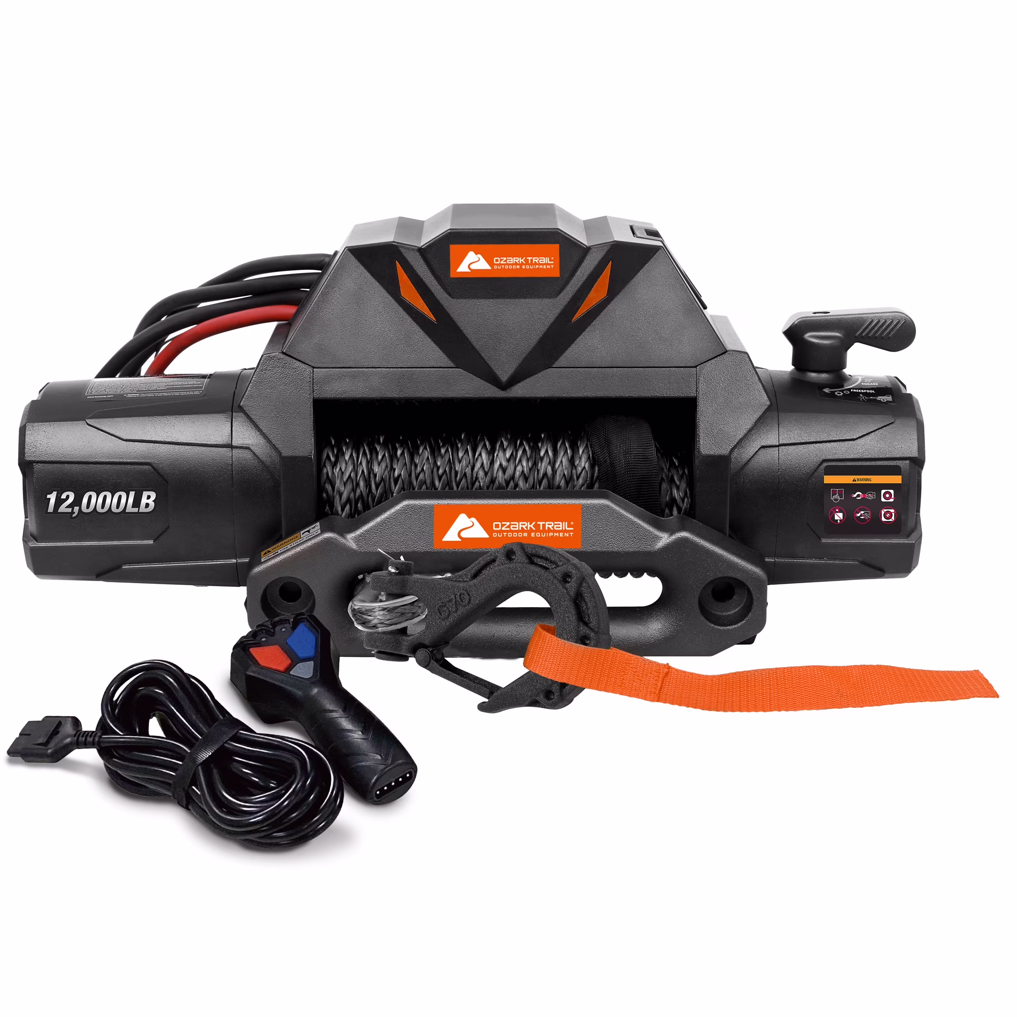 Ozark Trail 12,000 lb. Electric Truck Winch with 82 ft. Synthetic Rope with Wired Remote