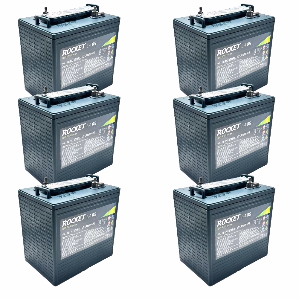 Rocket L-105 225Ah 6V Golf Cart Battery - Replaces Trojan T-105 (Set of 6)