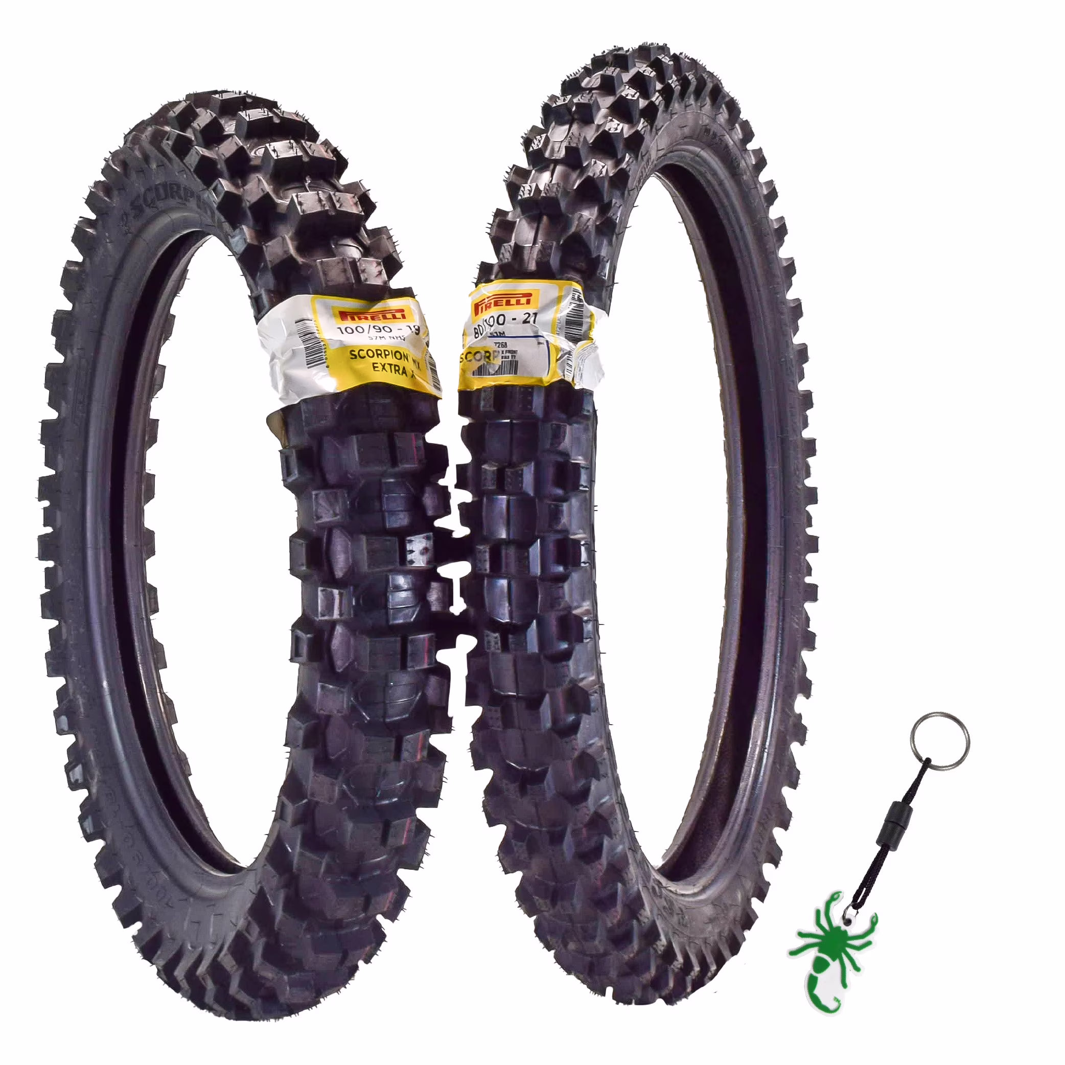Pirelli Scorpion MX Extra X Front 80/100-21 & Rear 100/90-19 Dirt Bike Tires with Keychain - Two Pack