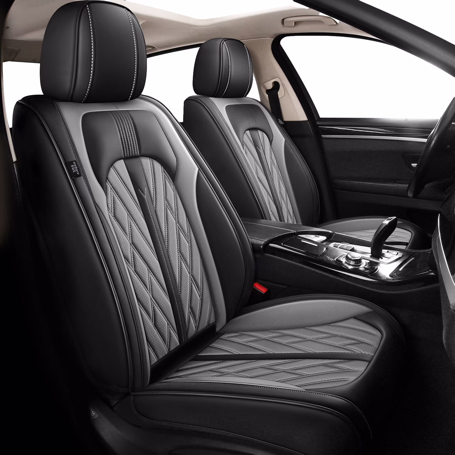 LAONNVIR Front Car Seat Covers Fit for Chevrolet Tahoe 1997-2025 Waterproof Premium Leather Car Interior,2 Pieces Auto Seat Protectors Black&Grey,Front Seat