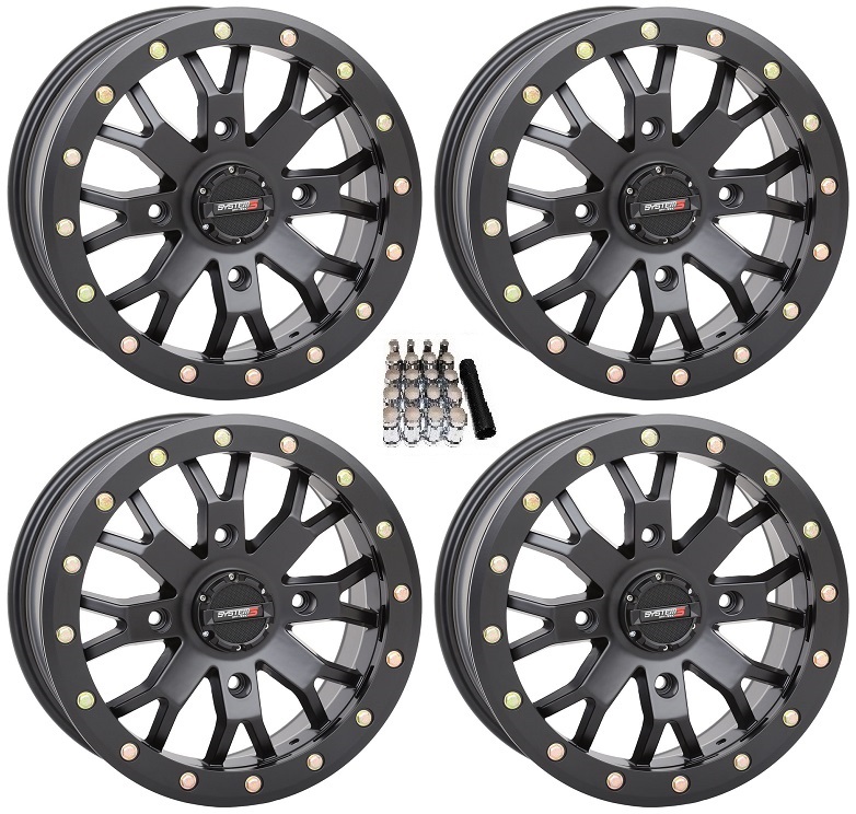 System 3 SB-4 Beadlock Black (6+1) UTV Wheels 15" Kawasaki Mule Pro FXT