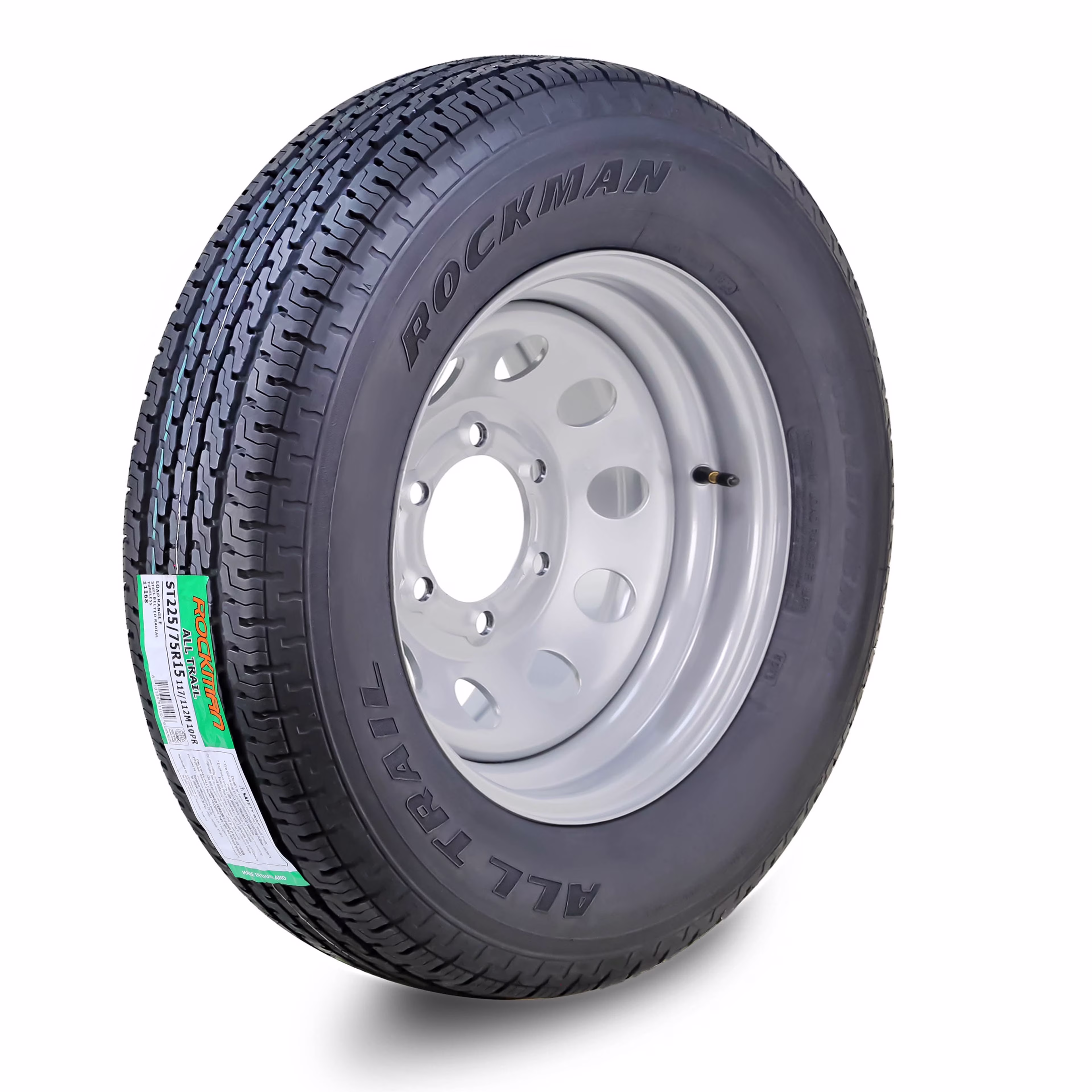 ROCKMAN Wheel Assembly ST225/75R15 10-Ply E 117M 6 Lug on 5.5" PCD Silver Mod Rim Trailer Tire