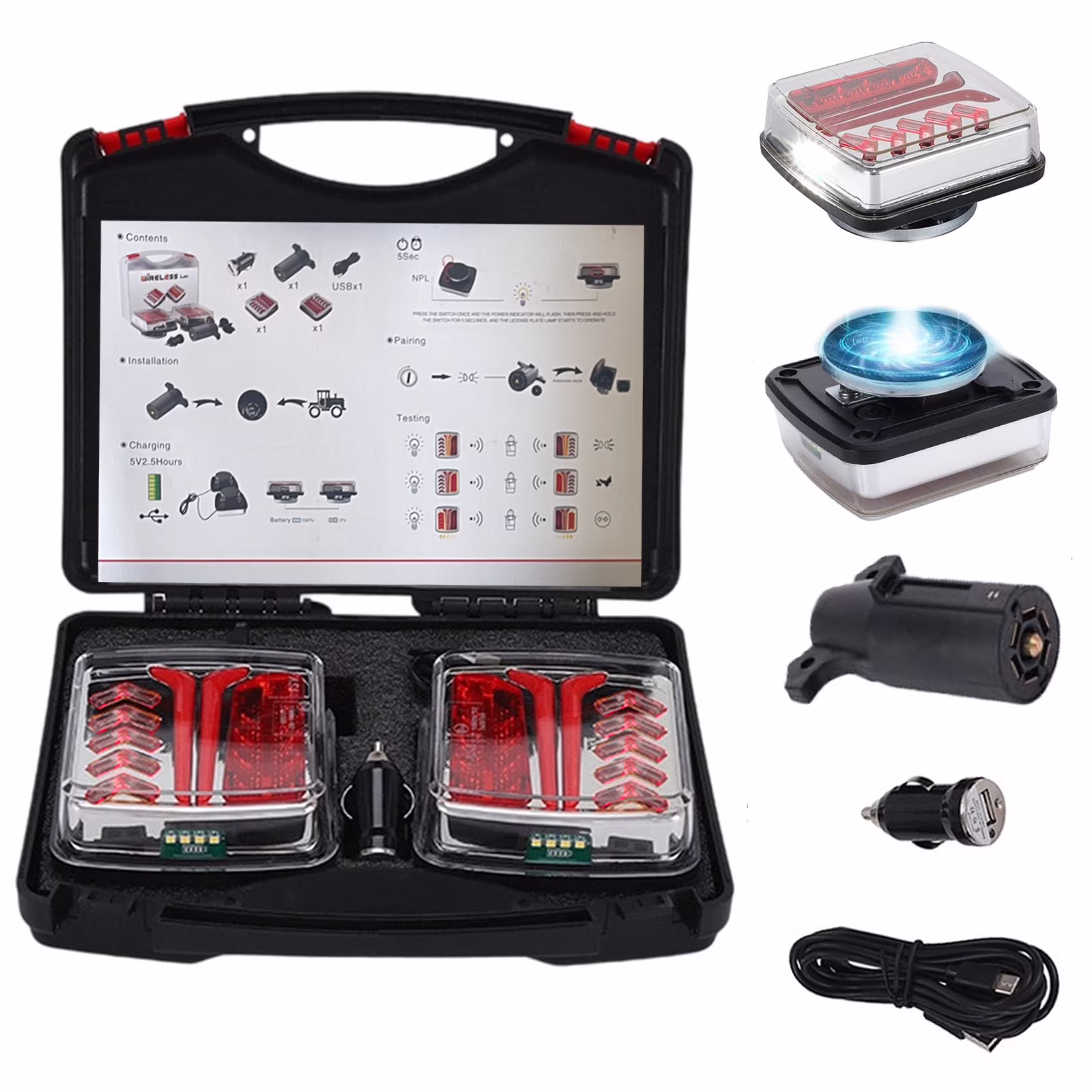 Magnetic Wireless Trailer Lights, Rechargeable LED Trailer Light for Towing Truck, Waterproof Tail Tow Lights Kit for RV Camper Boat Caravan, Portable Turn Signal Brake Running Stop