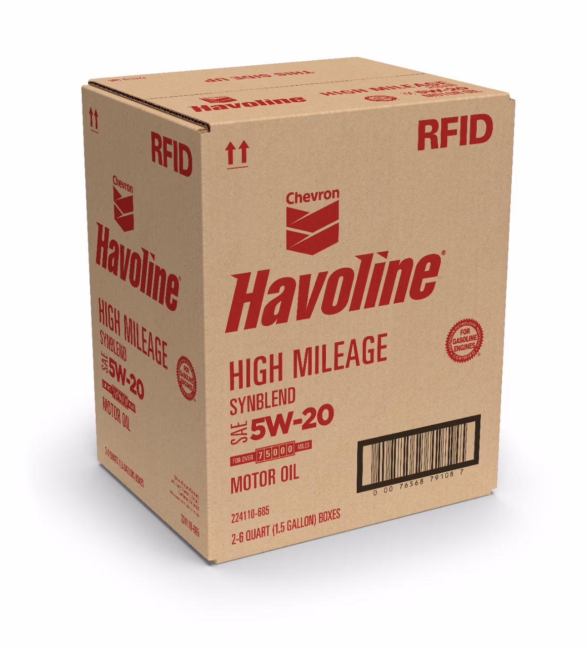 Chevron Havoline High Mileage Synthetic Technology Motor Oil 5W-20, 6 Quart Smart Change Box Case (2-Pack)