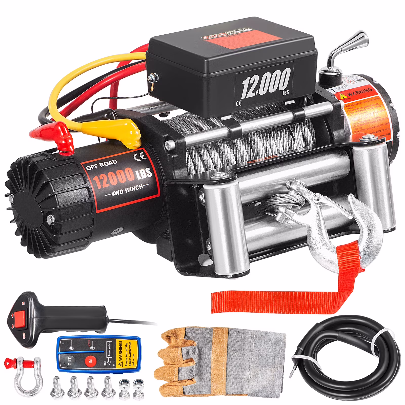KFFKFF Truck Winch 12000Ibs Electric Winch 85ft/26m Steel Cable 12V Power Winch Jeep Winch with Wireless Remote Control and Powerful Motor for UTV ATV & Jeep Truck and Wrangler in Car Lift