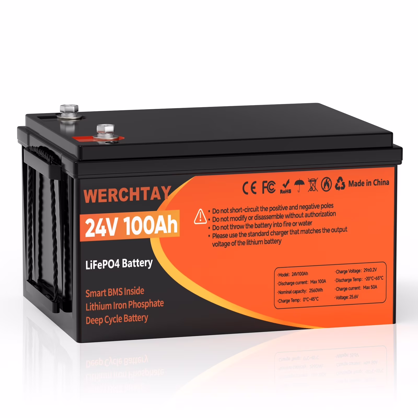 24V 100Ah LiFePO4 Battery, Lithium Battery Built-in 100A BMS, 4000 Deep Cycles Rechargeable Battery, Max. 2560W Load Power, Perfect for RV, Solar, Marine, Overland/Van, Off-Grid
